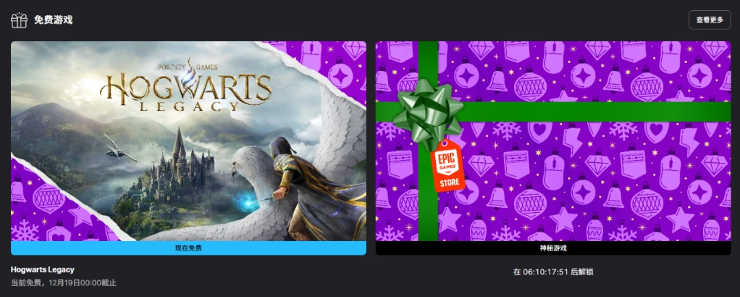 Epic游戏商城本周免费送出:《霍格沃茨之遗》,12月19日0点截止,原价384元,支持中文。下周Epic将送出一款神秘游戏。